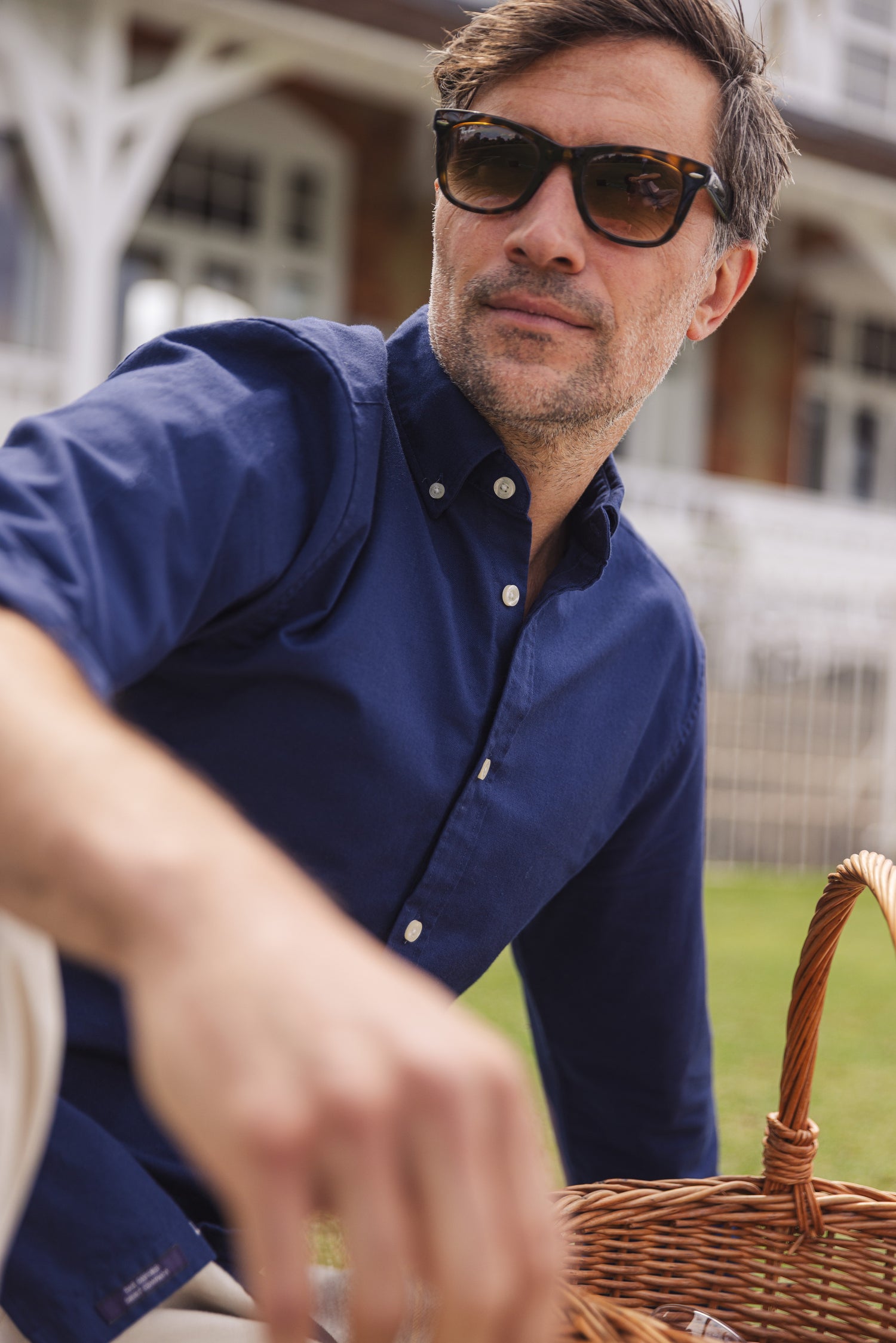 3/4 Sleeve Boat Neck Cotton Top - Navy
