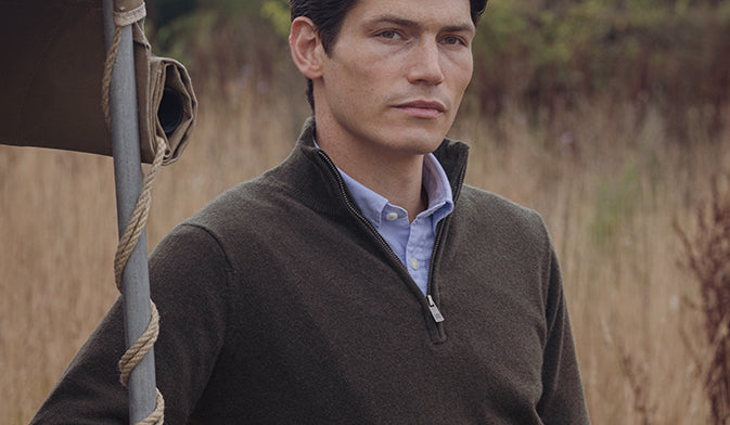 From smart layering to casual refinement, this collection features a range of styles to suit every setting. The 1/4 zip jumper brings a sporty touch to tailored looks, while the V-neck offers the perfect partner to classic collar shirts and ties. The timeless crew neck sits comfortably under a blazer or overcoat, and our sleeveless cashmere vests provide lightweight warmth for layering without added bulk. Available in classic neutrals and seasonal hues, each piece is versatile, breathable and easy to style. These shapes combine modern functionality with timeless British knitwear heritage.
