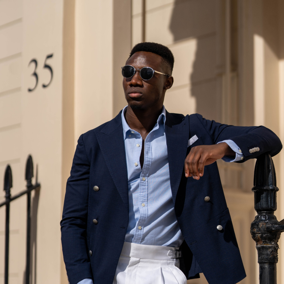 As the eldest child, Dapo often spent a lot of time with his father and it was a case of first up, best dressed in his household. Now grown up and working in the City, life for Dapo is busy. He has a successful career working in tech, a hectic social life and loves to document taking his passion for all things fashion to new heights. The Oxford shirt provides a great base for Dapo to style upon and leaves him comfortable and confident from desk to bar!