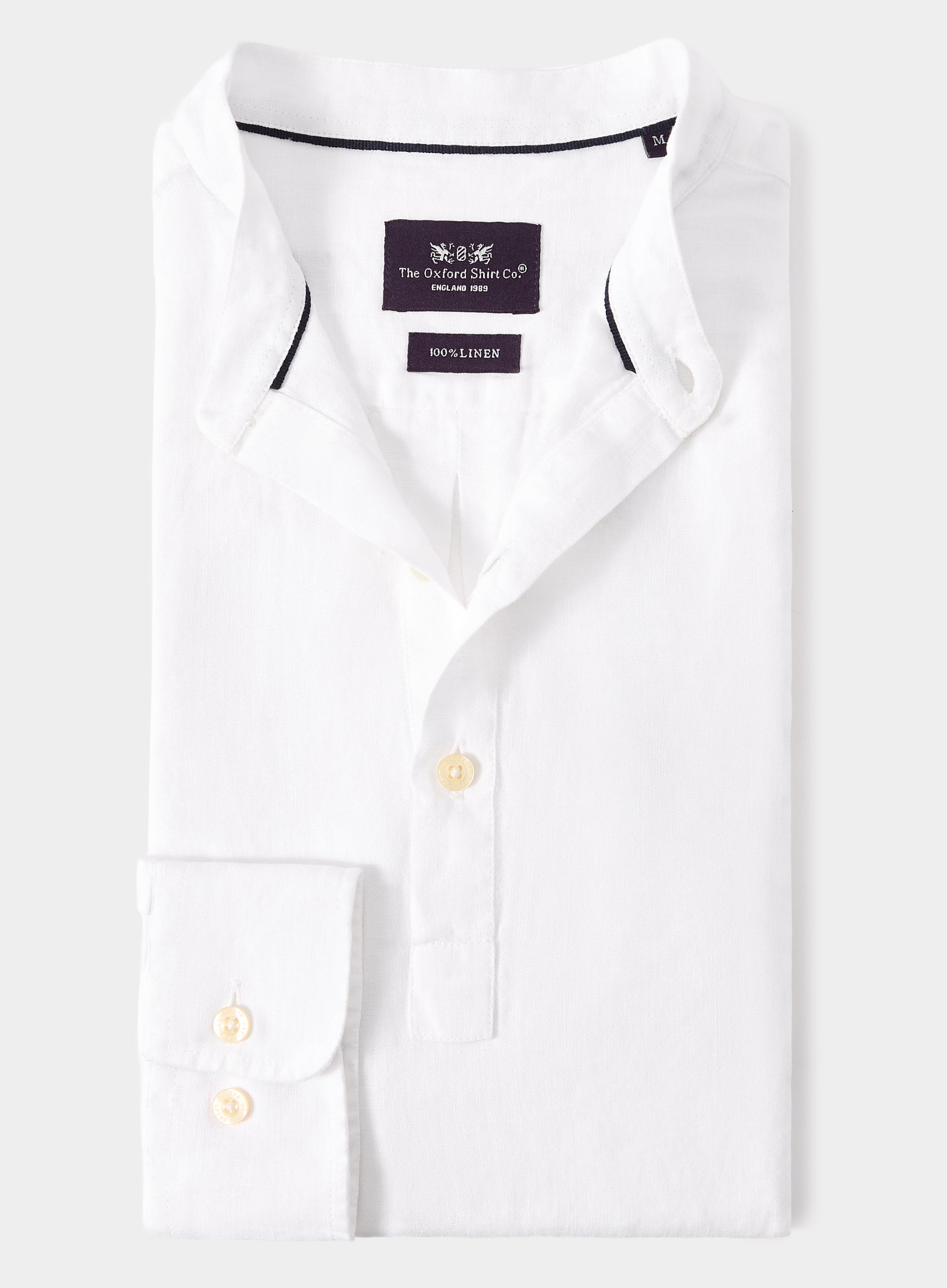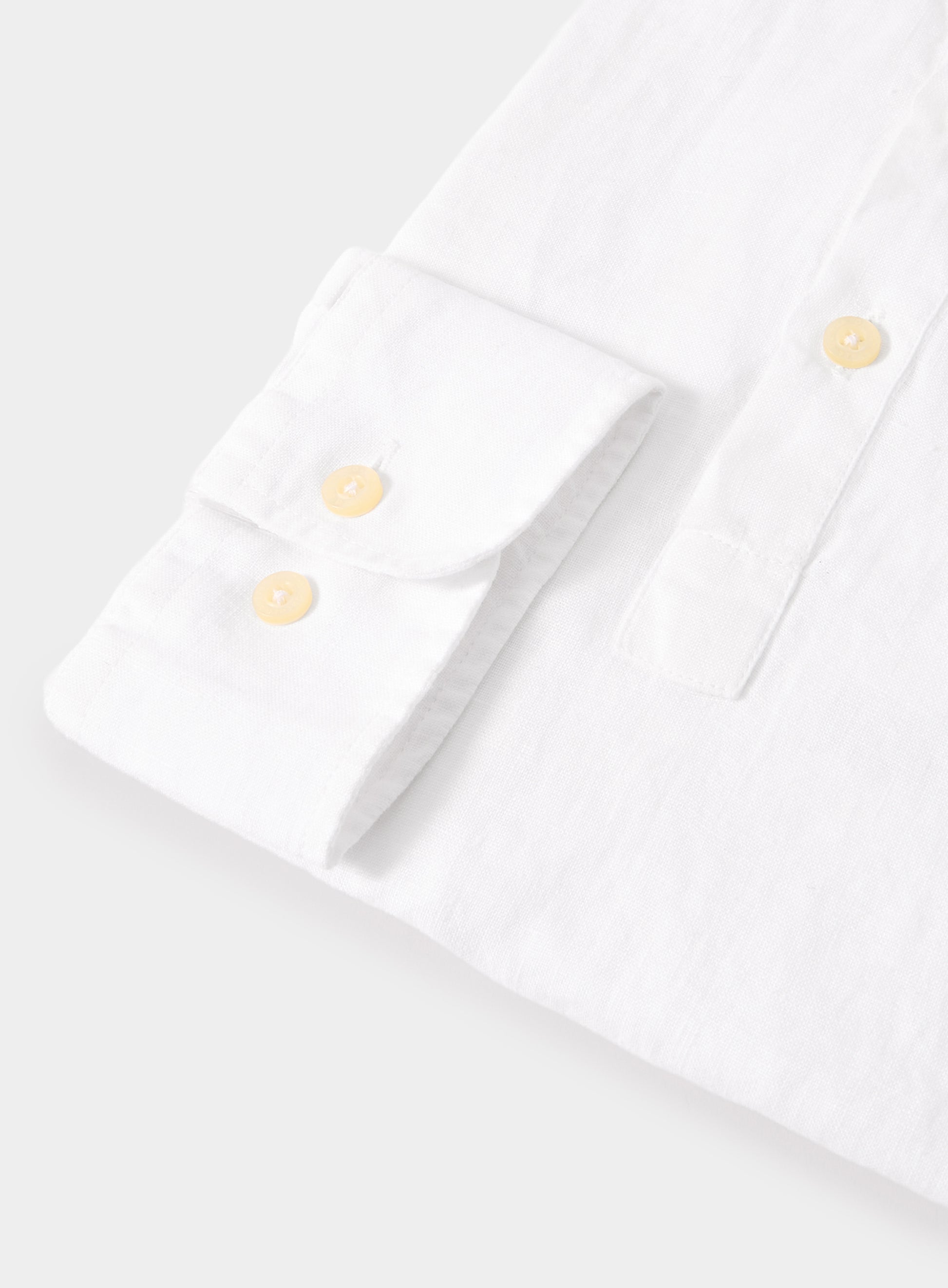 A warm-weather essential with understated polish. Our collarless linen shirt features a neat Nehru neckline and a half placket that keeps the look clean and airy. Cut for easy wear with long sleeves and button cuffs, it pairs as well with chinos as it does with denim.